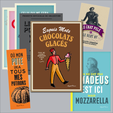 Exquis mots, chocolats glacés ! Cette superbe boite surprise contient 1 coffret collector de 9 cartes postales, 1 carnet de 52 pages, 1 dépliant de 10 petites cartes, 1 marque-page et des bons mots en papier.
